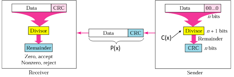 Before the data is sent, a certain number of bits are appended onto the message to ensure that it is perfectly divisible by a given polynomial. When the data is received, it is then divided by that polynomial again, and if it does not equal then an error has been found.