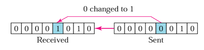 In a Single-Bit Error, only one bit in the received packet is different to what was expected.