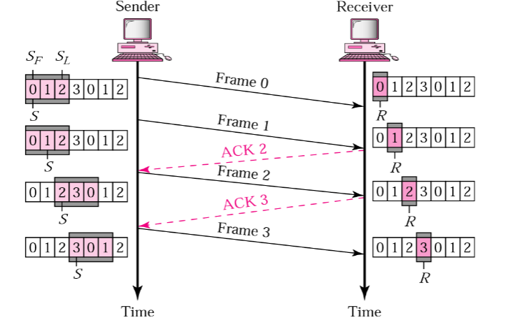 If the window size is and we acknowledge that we have received chunks of data, the window is advanced by , and the next pieces of data are sent. This way we can send multiple pieces of data to keep delay lower if a series of successes happen.