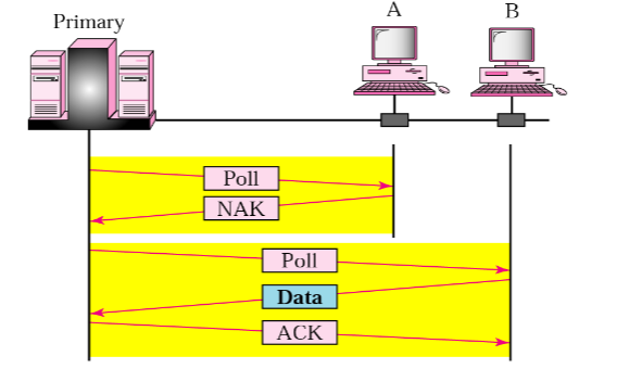 Unlike reservation the primary node instead will periodically contact each node and ask if it has data to transmit, and then pass it to it’s destination.