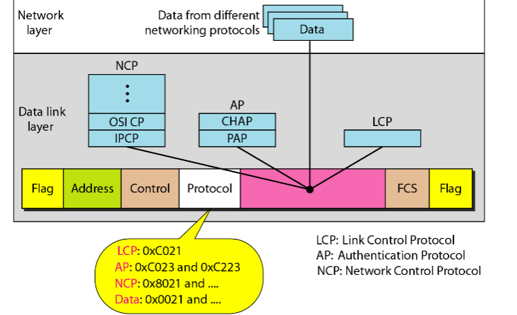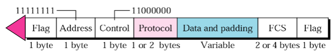 A PPP frame is a modified version of a HLDC Frame which carries extra data.